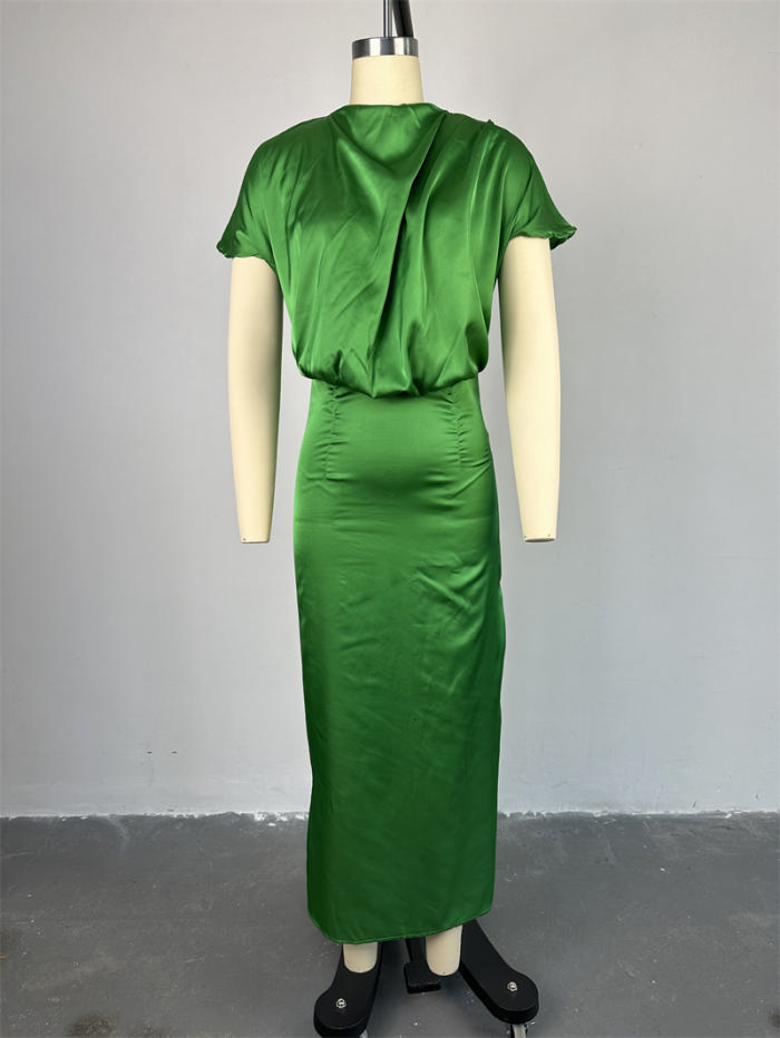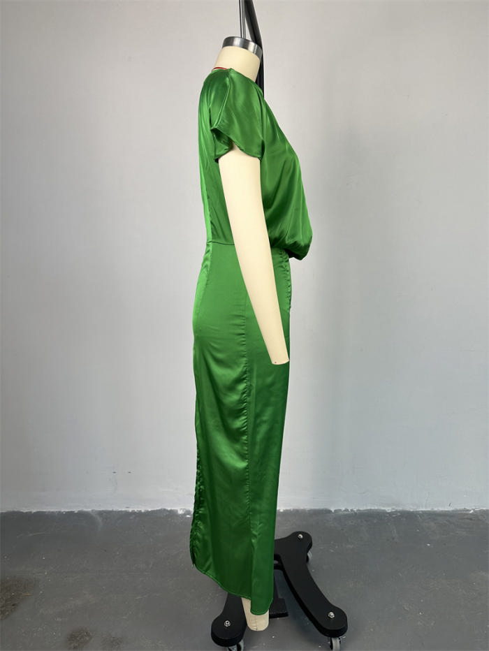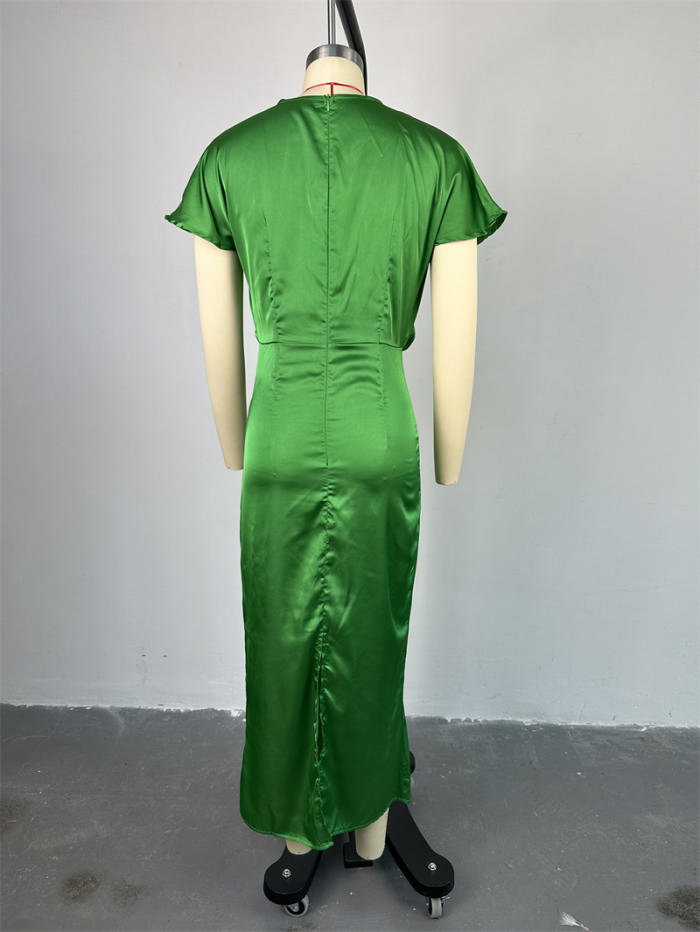 (Real Image)2024 Styles Plus Size Women Summer Elegant Ruffled Collar Short Sleeve High-Waist Bodycon DressSKU: #CF91079-2