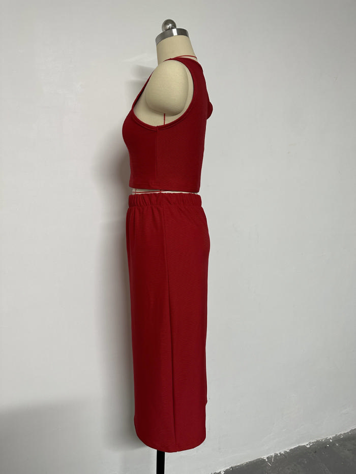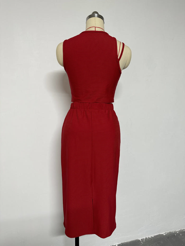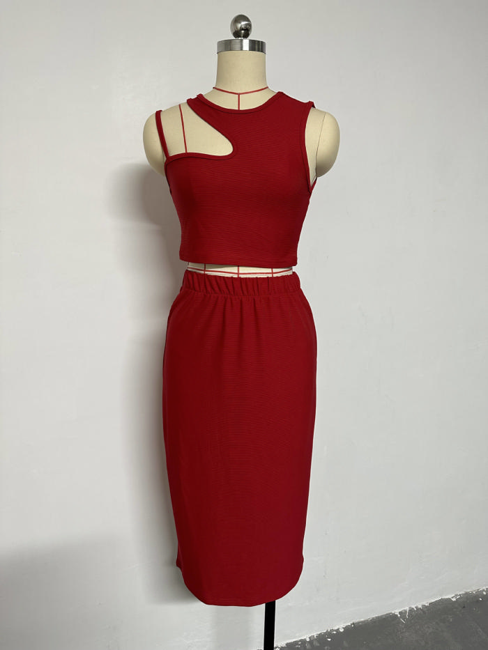 (Real Image)2024 Styles Plus Size Women Summer Fresh and Sweet Tank Top with High-Waist Midi Skirt Fashion Casual SetSKU: #CF91083-1