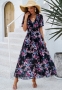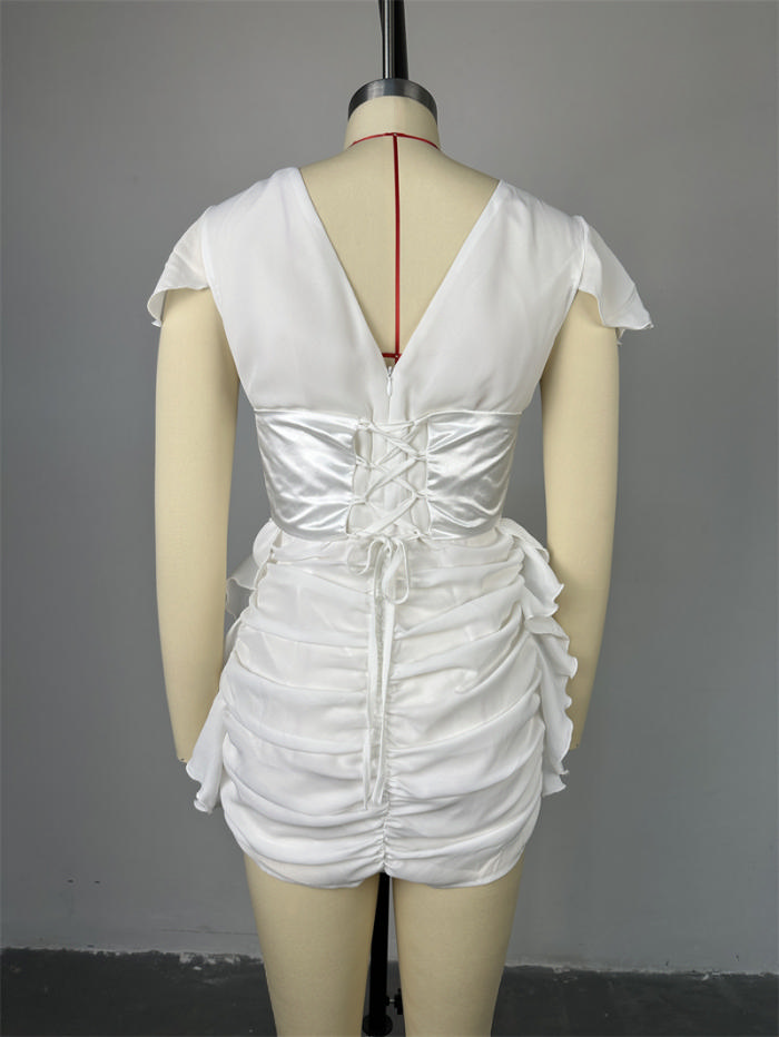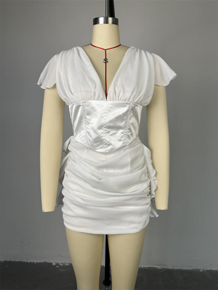 (Real Image)2024 Styles Plus Size Women Summer Stylish V-Neck Short Sleeve Pleated Waist-Cinch Cropped DressSKU: #CF91073-1