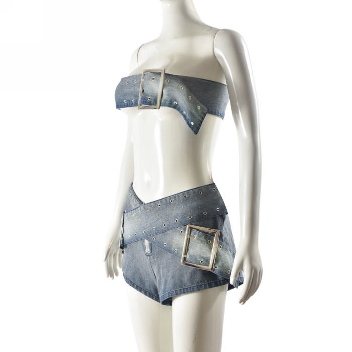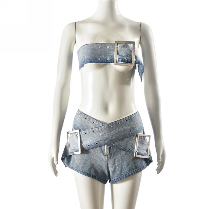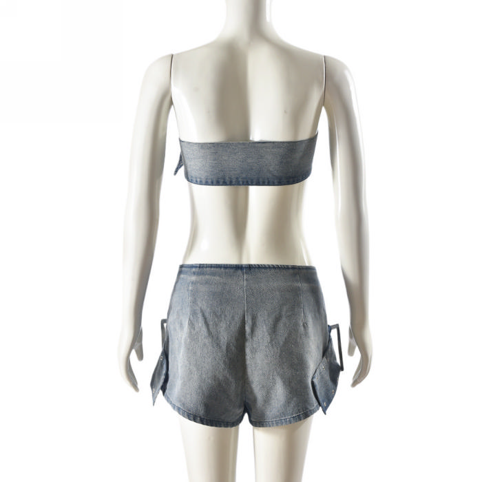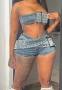 (Real Image)2024 Styles Women Adjustable Vest and Mini Skirt Sexy Denim Two-Piece SetSKU: #CF59885-1