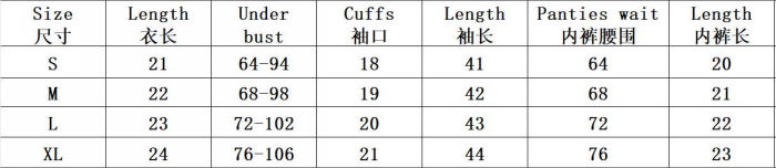 | Size | Bust | Waist | Hips |