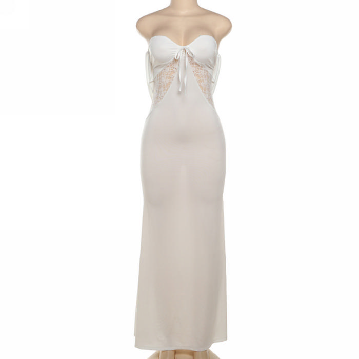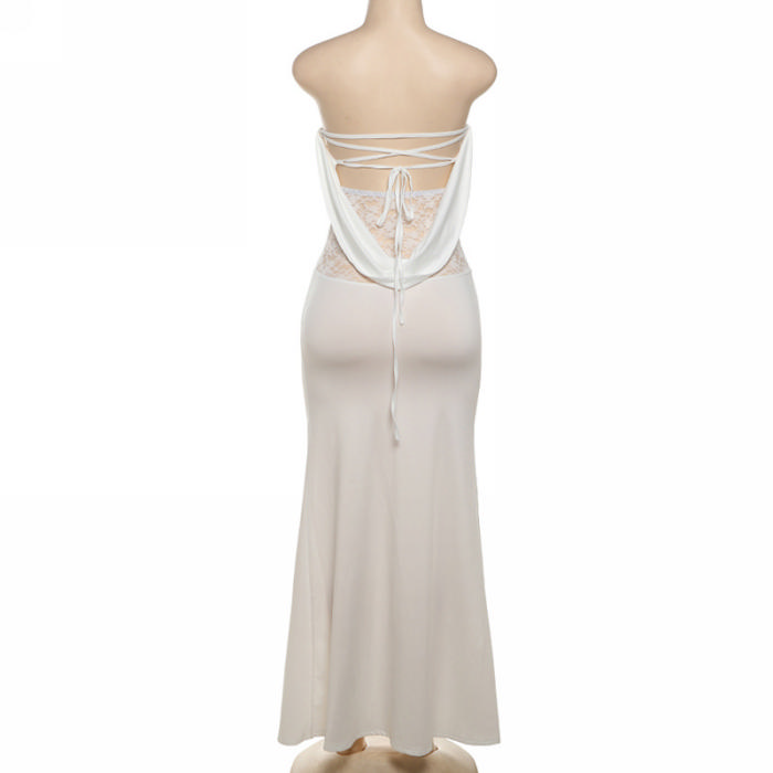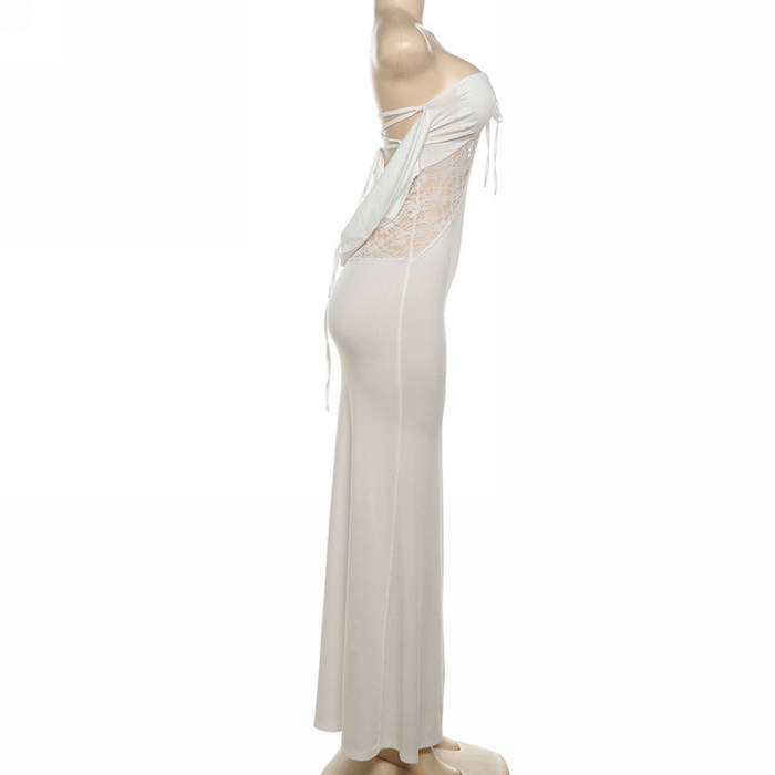 (Real Image)2024 Styles Women Alluring Halter Backless Lace-Up Sheer Lace Gown with a Playful FlairSKU: #CF83386-1