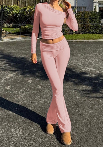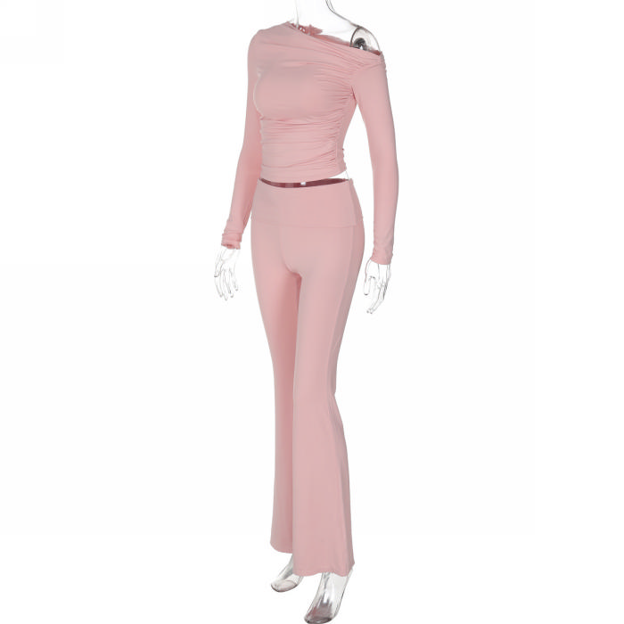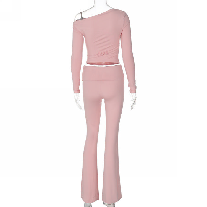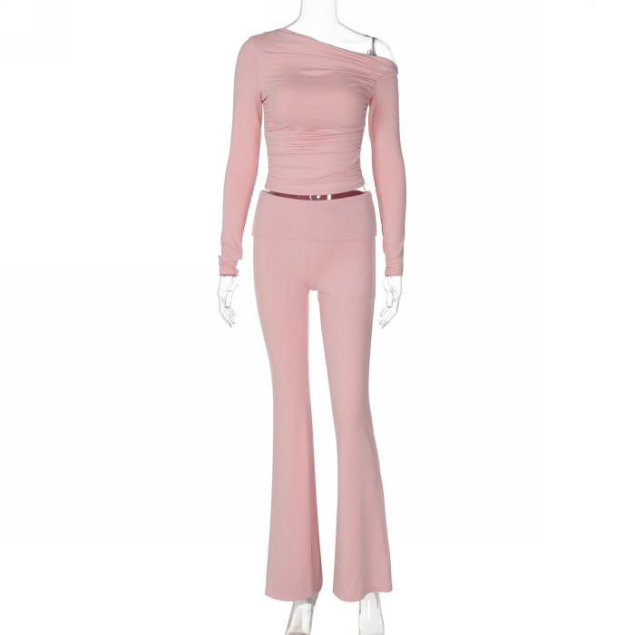 (Real Image)2024 Styles Women Asymmetrical Neckline Long Sleeve Top with Slim Pants SetSKU: #CF88295-1