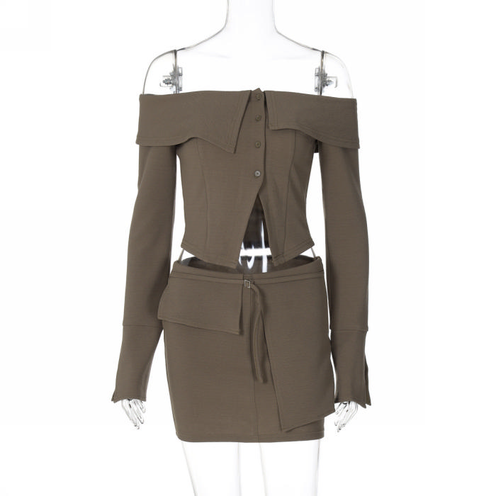 (Real Image)2024 Styles Women Autumn Fashion Open-Front Crop Top & Slim Skirt Set with Button DetailSKU: #CF88317-1