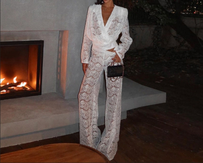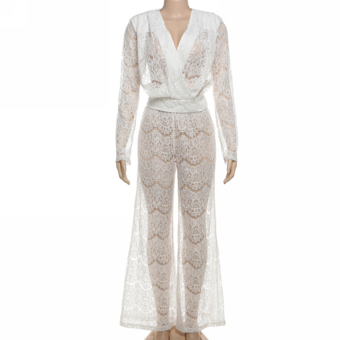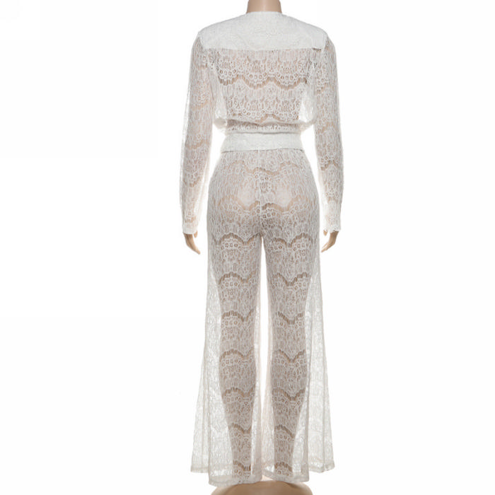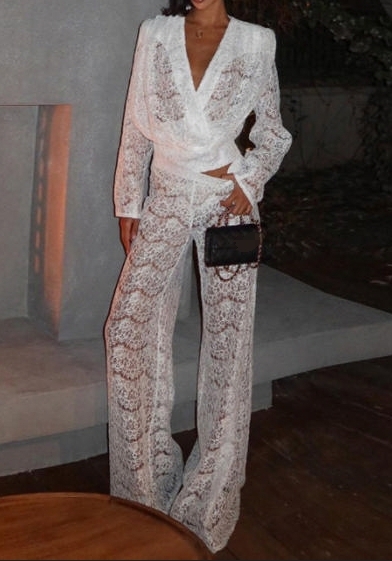 (Real Image)2024 Styles Women Autumn Sexy Lace Long Sleeve Top & High-Waist Loose Pants SetSKU: #CF77848-1