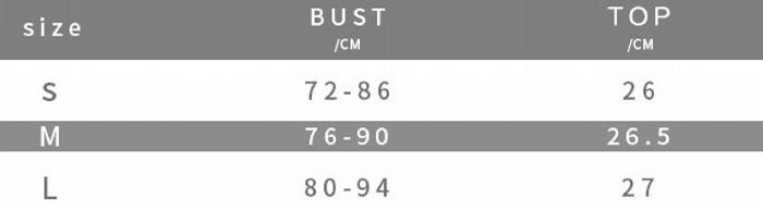| Size | Bust | Waist | Hips |