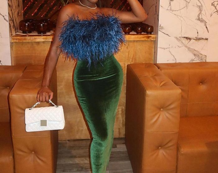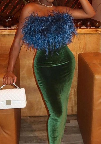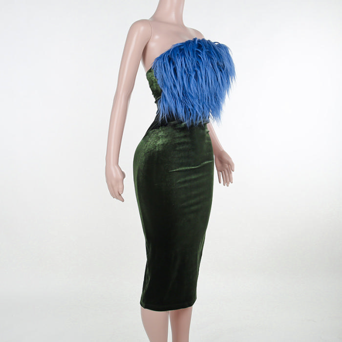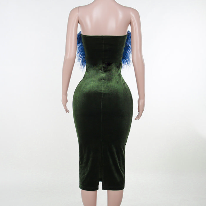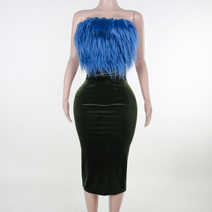 (Real Image)2024 Styles Women Autumn Slim Fitting Waist-Cinching Faux Fur Halter Korean Plush Dress, Bodycon SkirtSKU: #XF92869-1