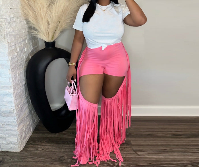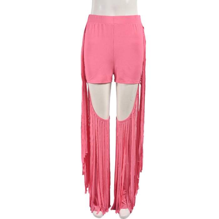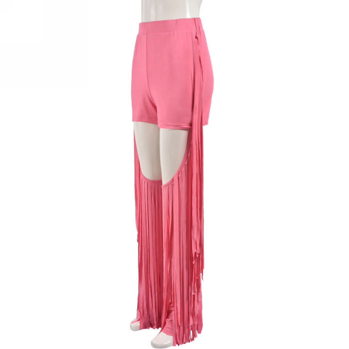 (Real Image)2024 Styles Women Autumn Trendy Individuality Pleated Open-Work Pencil Pants with FringeSKU: #CF75063-1