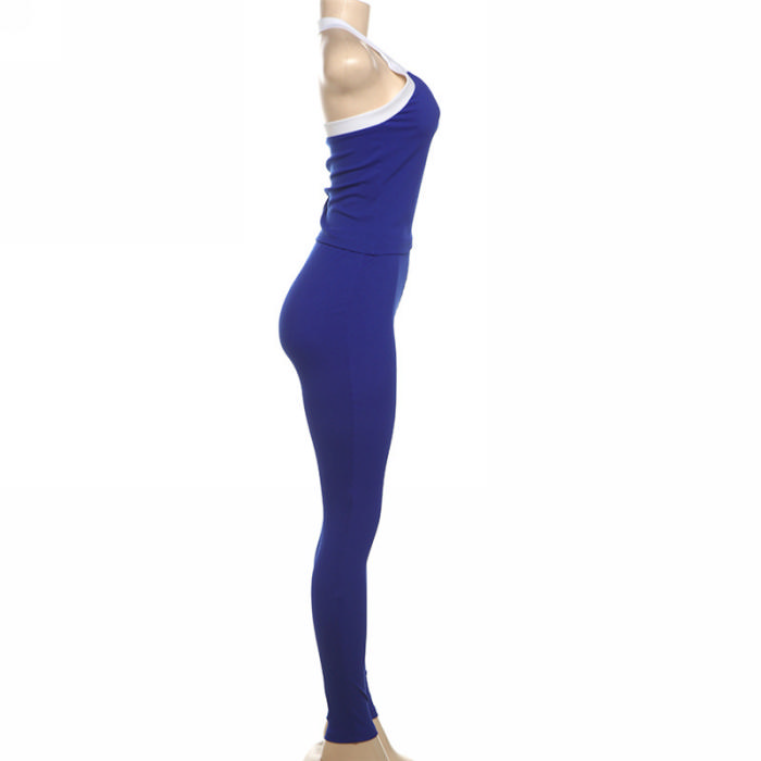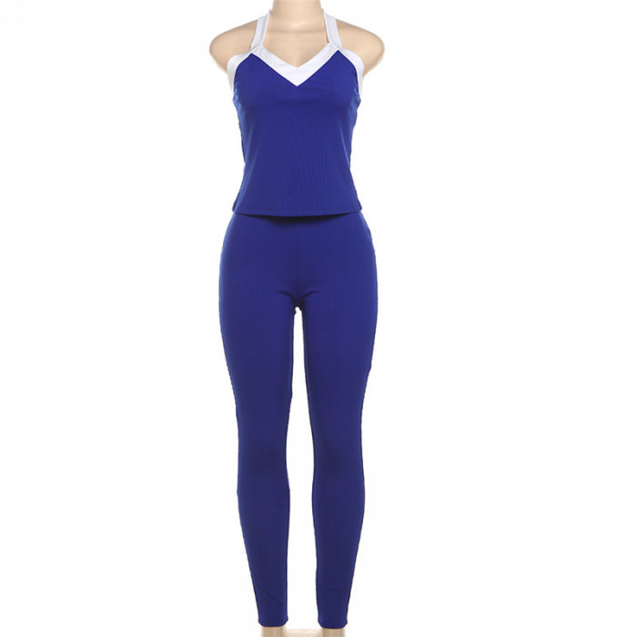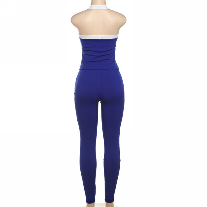 (Real Image)2024 Styles Women Autumn/Winter Color-Block Backless Halter Top & High-Waist Bodycon Pants Fashion SetSKU: #CF77851-1