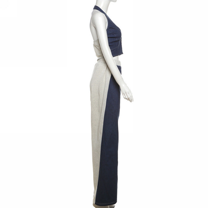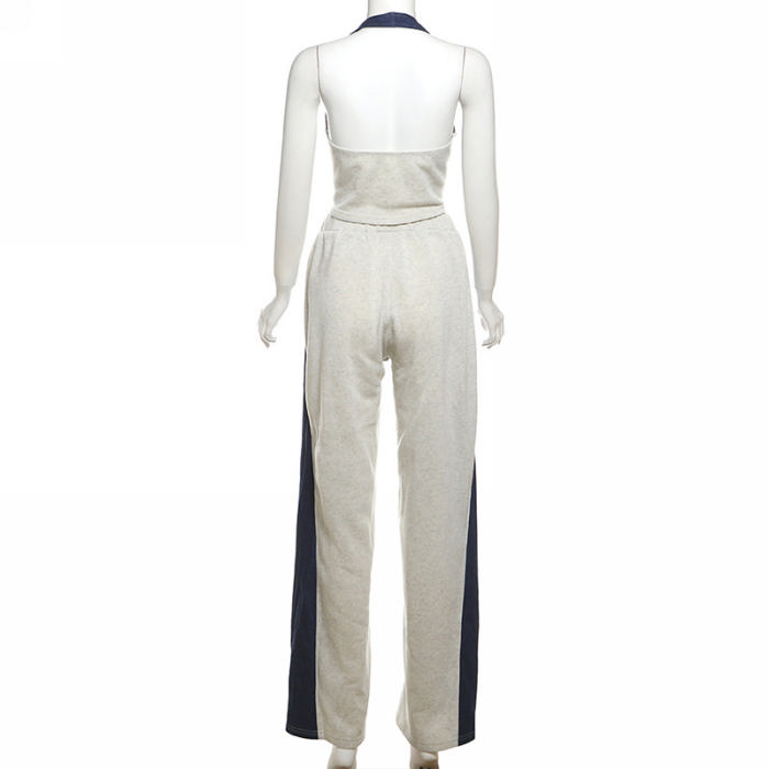(Real Image)2024 Styles Women Autumn/Winter Cropped Halter Tank Top & Contrast High-Waist Casual Pants SetSKU: #CF77843-1