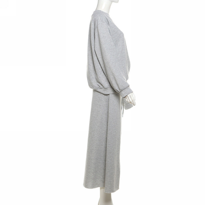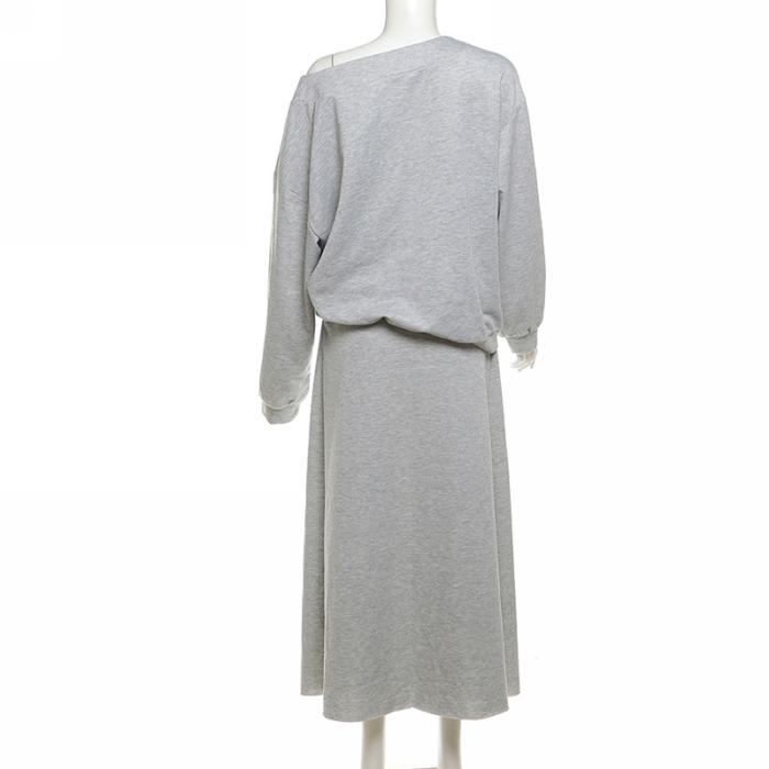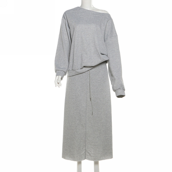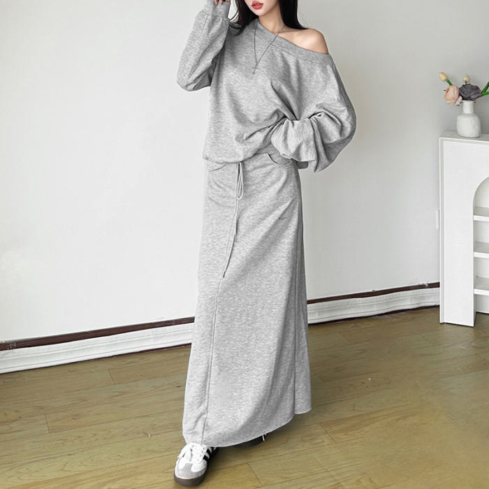 (Real Image)2024 Styles Women Autumn/Winter Off-Shoulder Cropped Hoodie & High-Waist Belted Skirt SetSKU: #CF77837-1