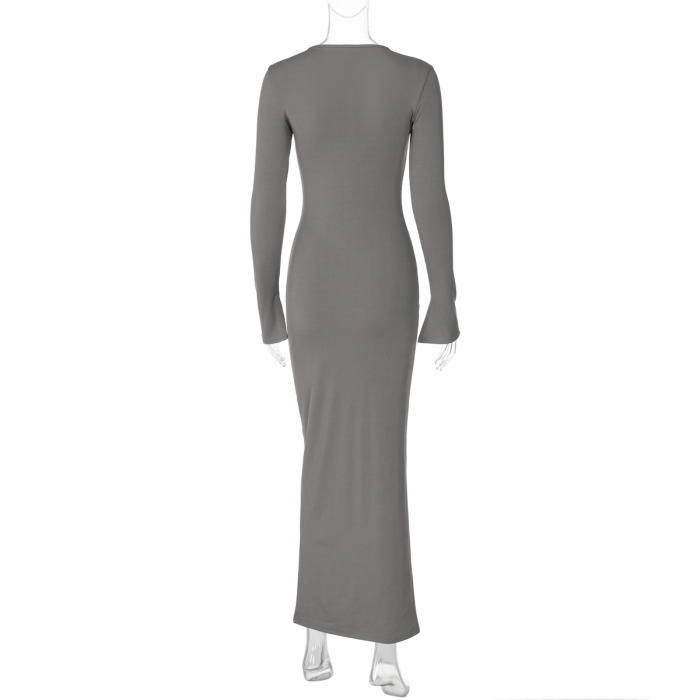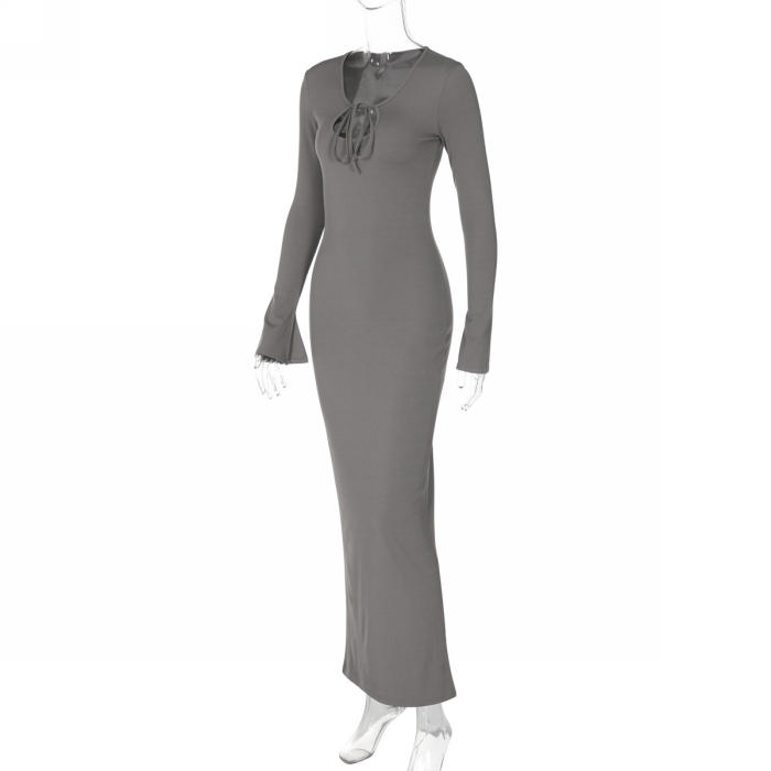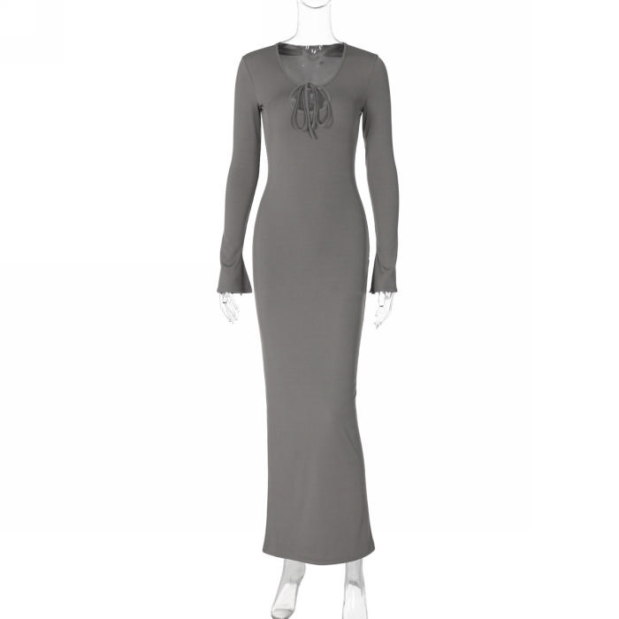 (Real Image)2024 Styles Women Autumn/Winter Sexy Chest-Tie Long Sleeve Dress with a Sleek Bodycon FitSKU: #CF88316-1