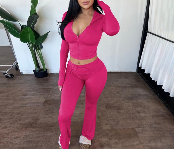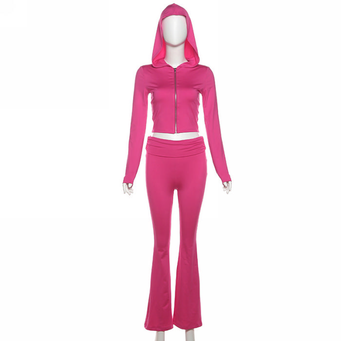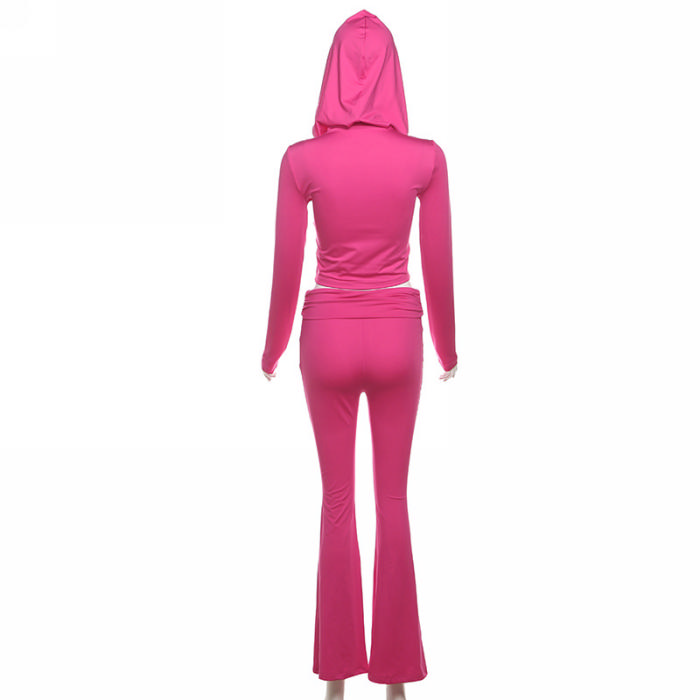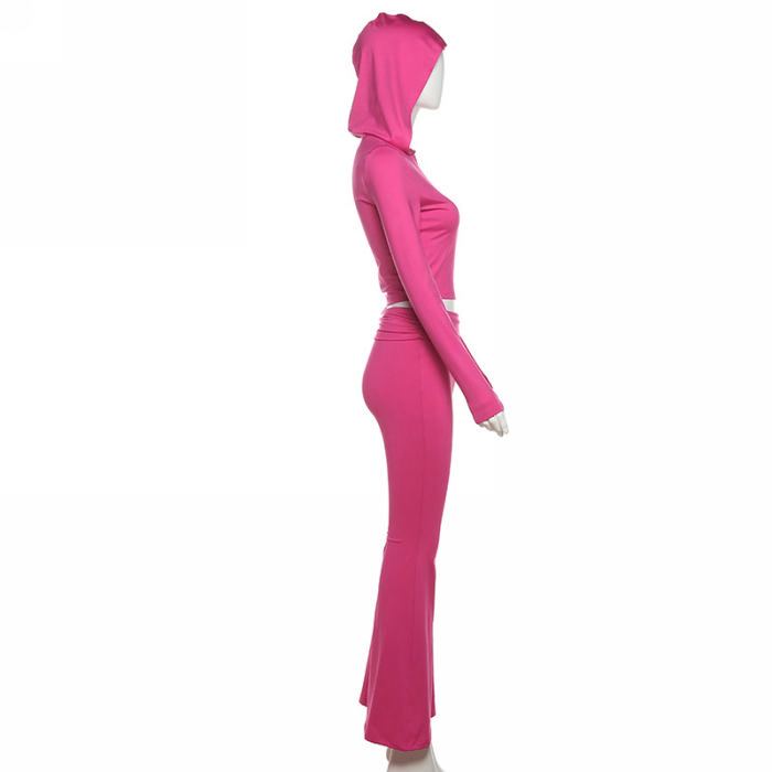 (Real Image)2024 Styles Women Autumn/Winter Sexy Cropped Long Sleeve Hooded Top & Fitted Flare Pants SetSKU: #CF77846-1