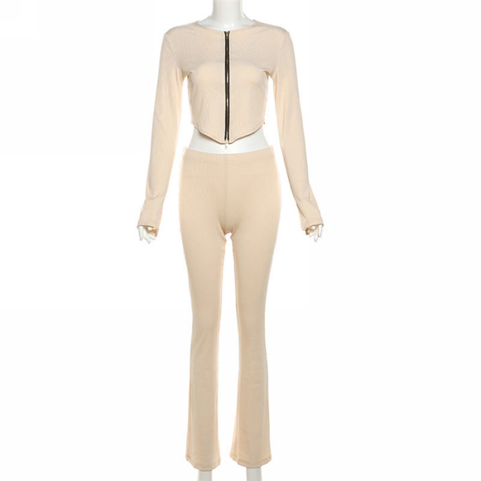 (Real Image)2024 Styles Women Autumn/Winter Sexy Cropped Long Sleeve Top & Slim Pants Two-Piece SetSKU: #CF77849-1