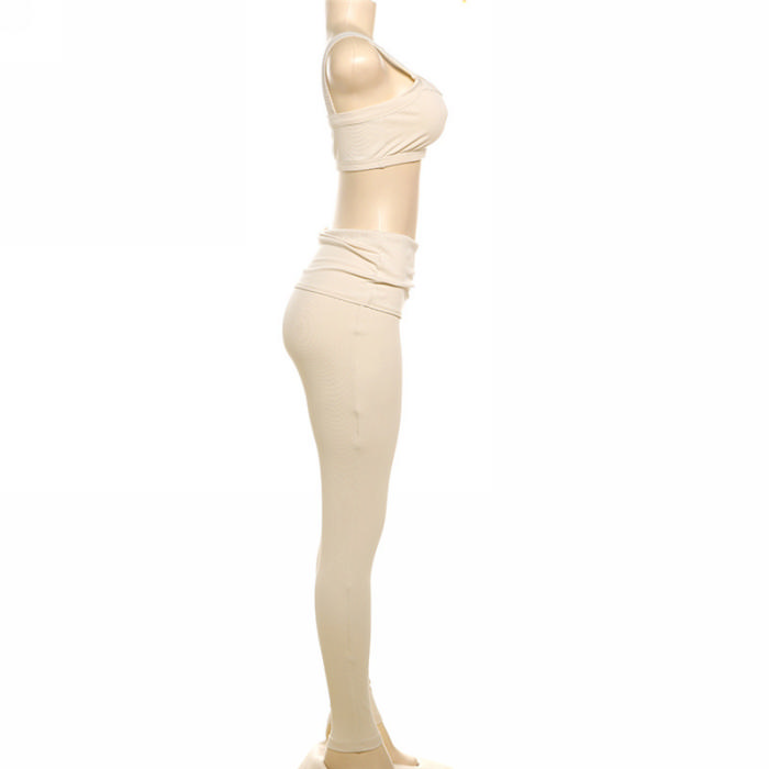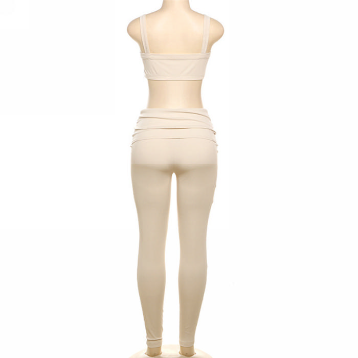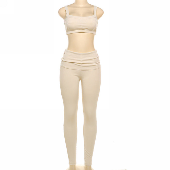 (Real Image)2024 Styles Women Autumn/Winter Solid Color Sexy Cropped Tank Top & High-Waist Flared Pants Casual SetSKU: #CF77866-1