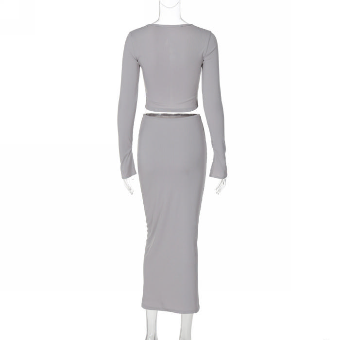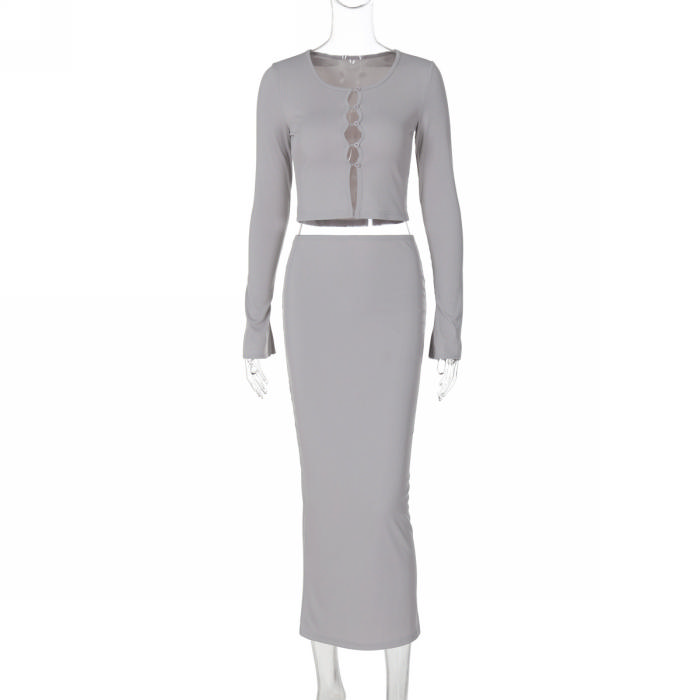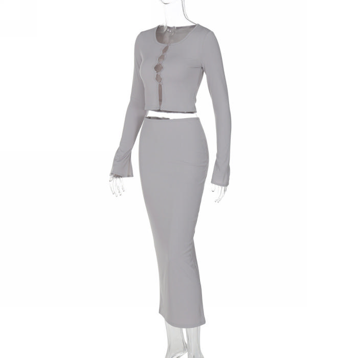 (Real Image)2024 Styles Women Autumn/Winter Stylish Open-Front Crop Top & High-Waist Pencil Skirt SetSKU: #CF88315-1