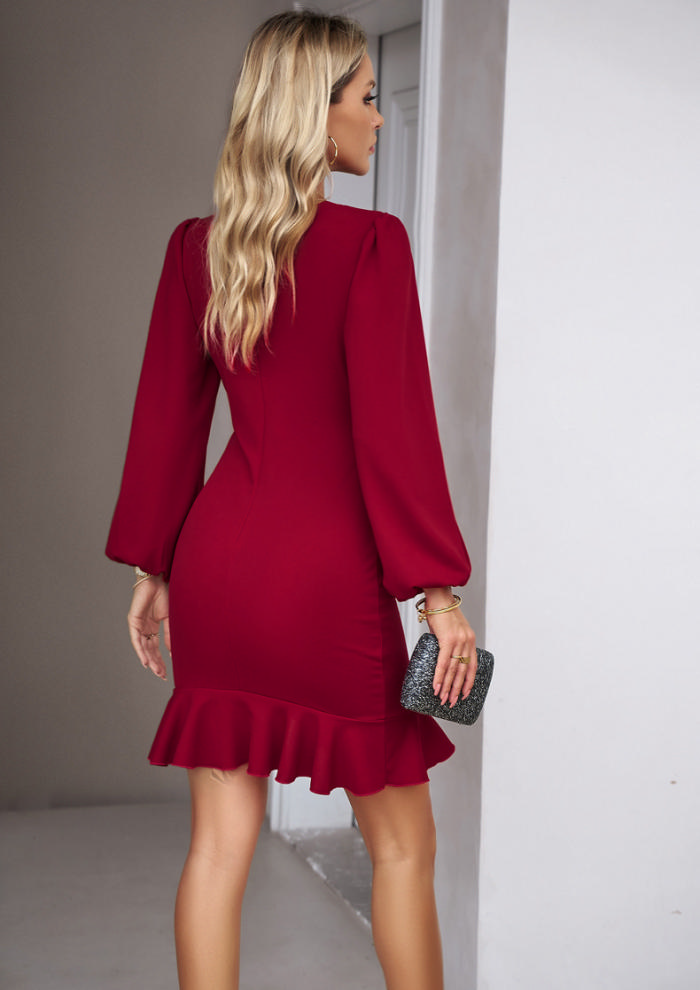 (Real Image)2024 Styles Women Autumn/Winter Stylish Puff Sleeve Solid Color DressSKU: #XF45080-3