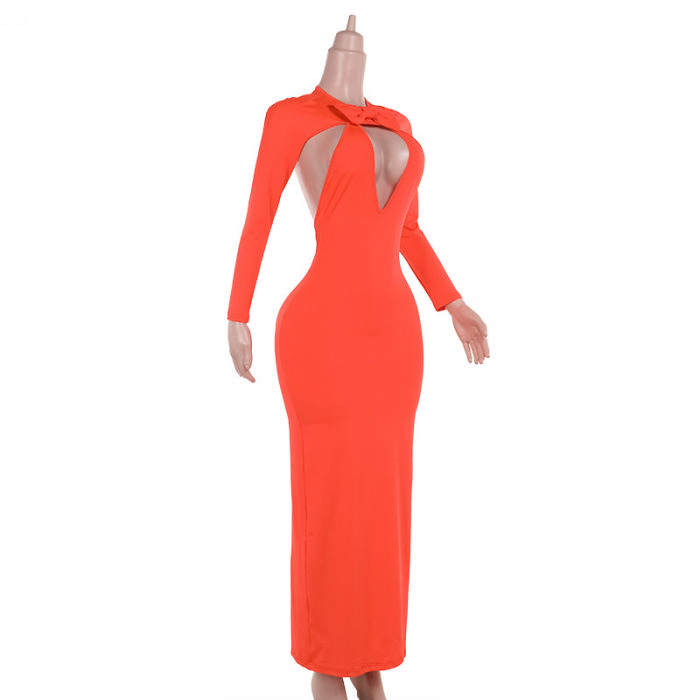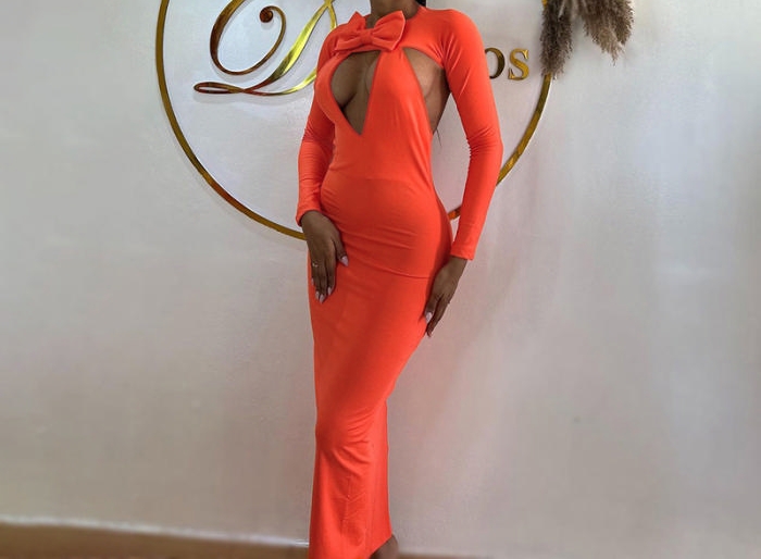 (Real Image)2024 Styles Women Back-Exposing V-Neck Bow-Accented Long-Sleeve DressSKU: #XF92924-1