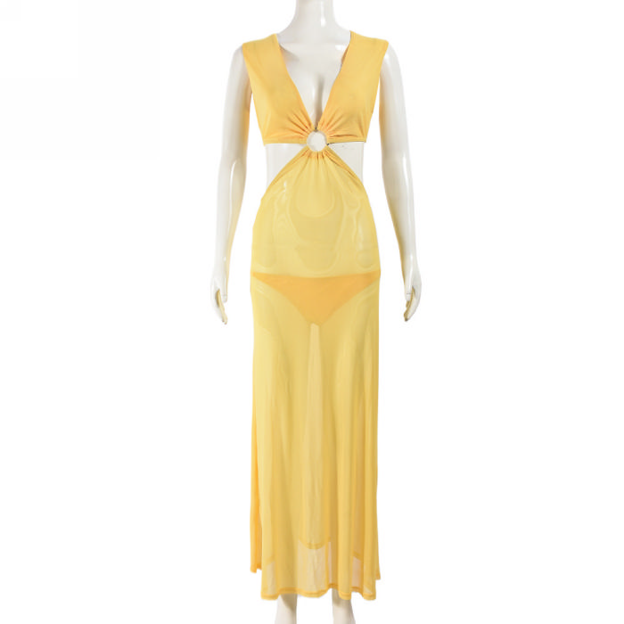 (Real Image)2024 Styles Women Beach Chic: Off-Shoulder Body-Hugging Mesh Sheer Mini Skirt for a Seductive LookSKU: #CF59956-1