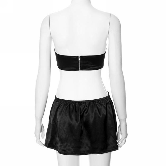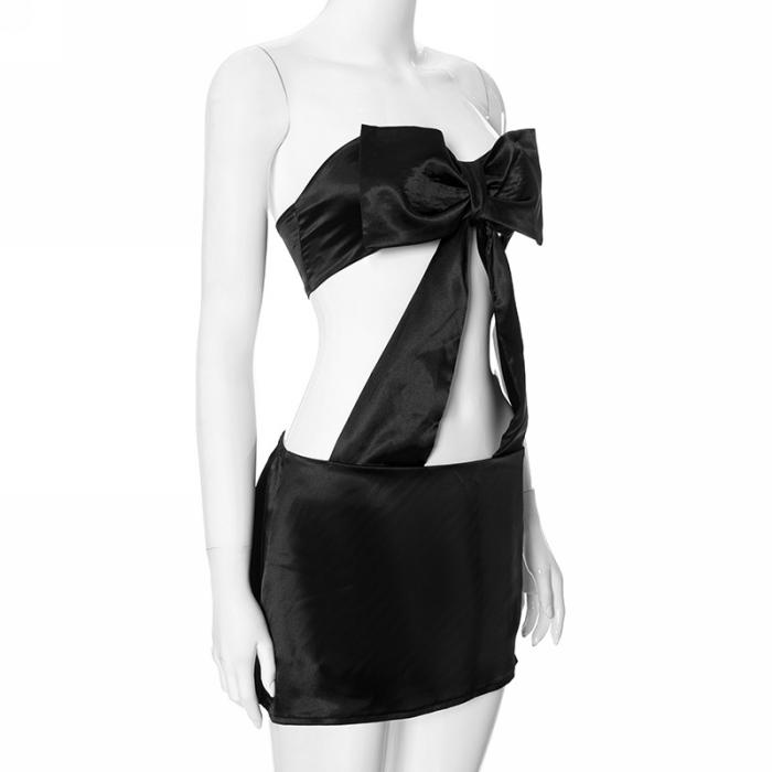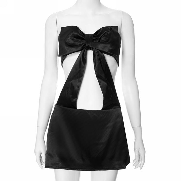 (Real Image)2024 Styles Women Black Bow Detail Open-Work Zippered Open Back Mini DressSKU: #CF761828-1