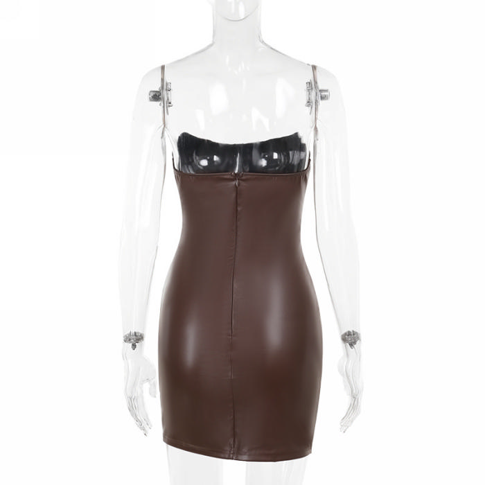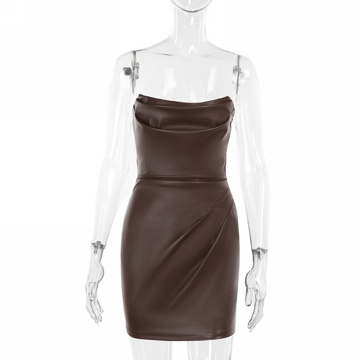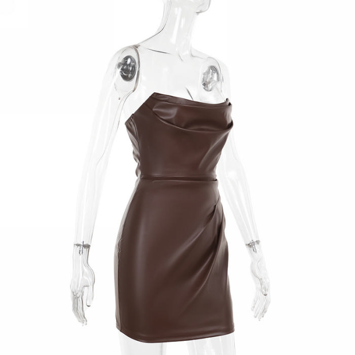 (Real Image)2024 Styles Women Body-Conscious Leather Pleated Bustier DressSKU: #XF92919-1
