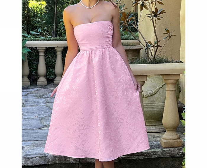 (Real Image)2024 Styles Women Body-Hugging Jacquard Satin Bustier DressSKU: #XF92910-1