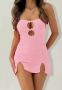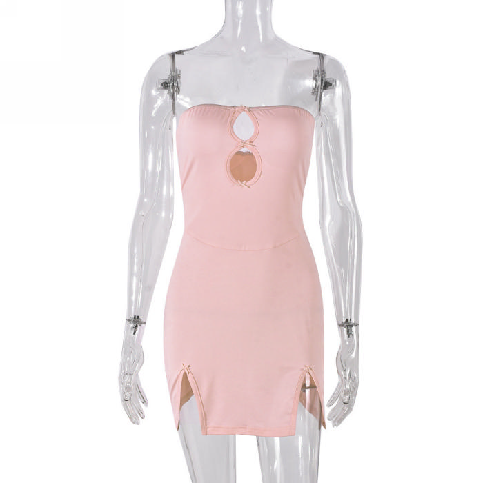 (Real Image)2024 Styles Women Bow-Back Openwork Sleeveless Split Sexy Street Style DressSKU: #CF59815-1