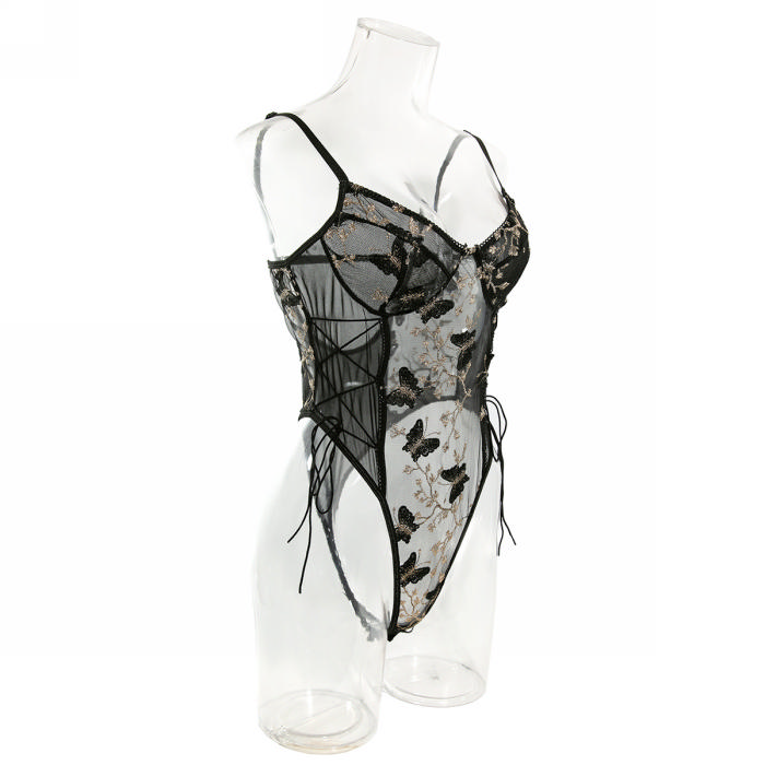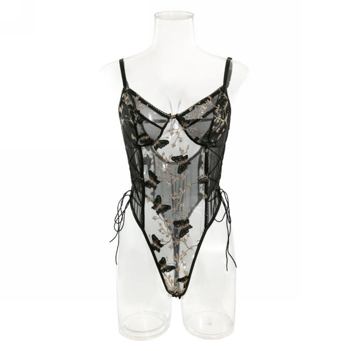 (Real Image)2024 Styles Women Butterfly Embroidered Body-Hugging Sexy Versatile Erotic BodysuitSKU: #GF03029-2
