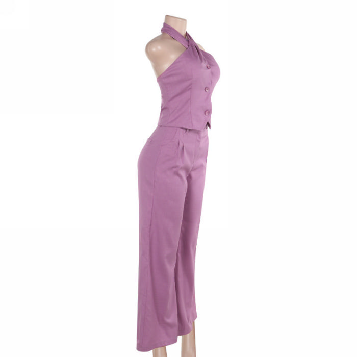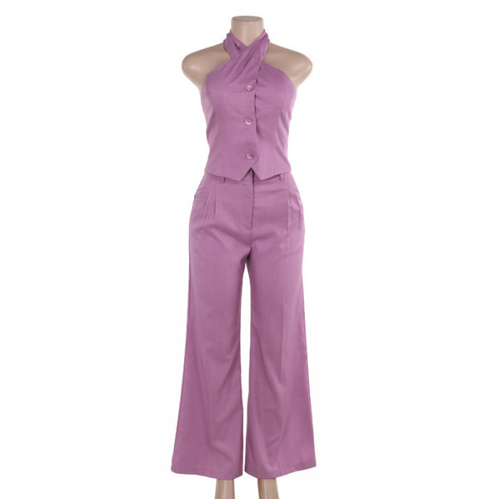 (Real Image)2024 Styles Women Casual Halter Top with Wide-Leg Pants Suit SetSKU: #XF92930-1