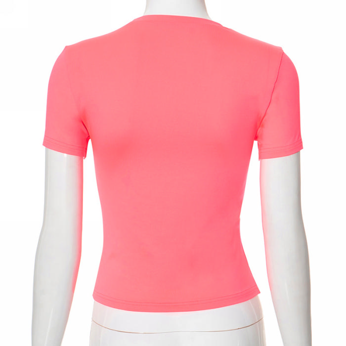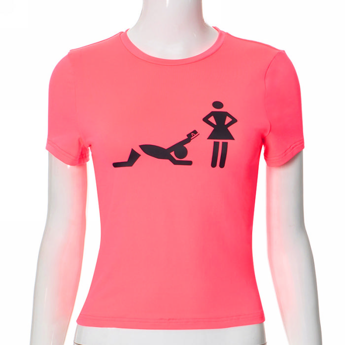 (Real Image)2024 Styles Women Casual Printed Lettering Slim Spice Short-Sleeved T-ShirtSKU: #CF92167-1