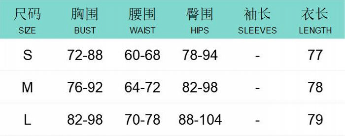 | Size | Bust | Waist | Hips |