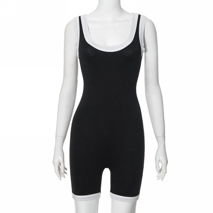 (Real Image)2024 Styles Women Color-Blocking Gym Back-Exposing Bodysuit with Tight One-Piece LeggingsSKU: #CF92075-1