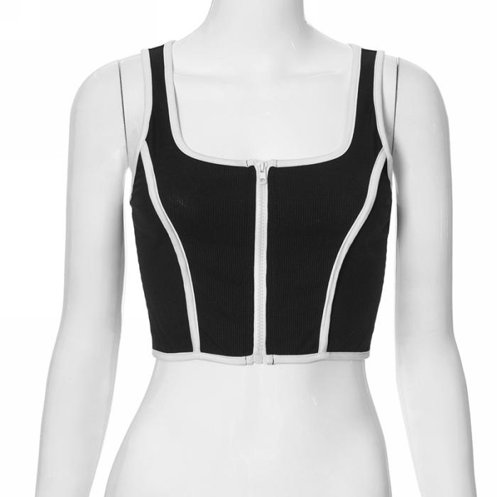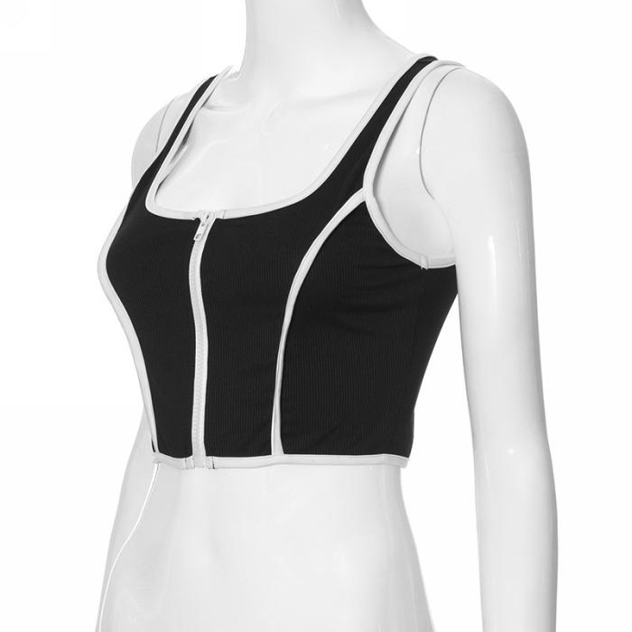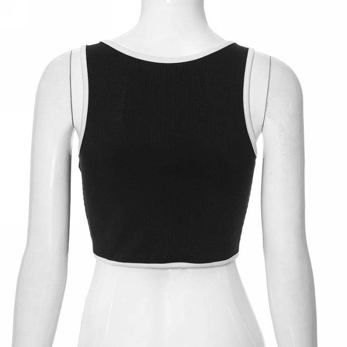 (Real Image)2024 Styles Women Color-Blocking Large Bust Slimming Vest Crop TopSKU: #CF92079-1
