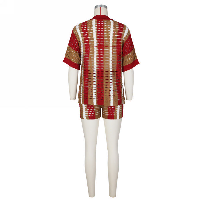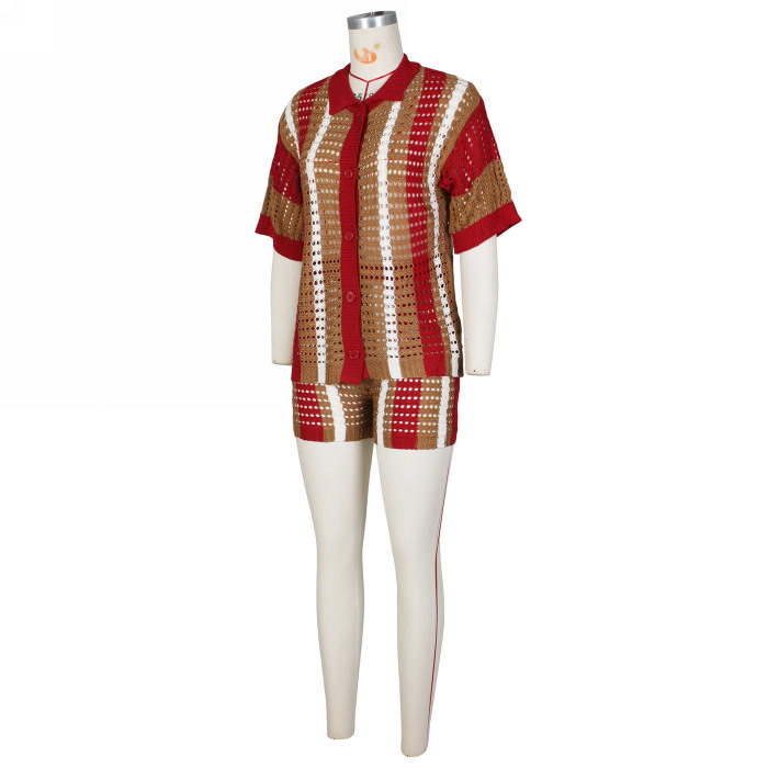 (Real Image)2024 Styles Women Contrast Color Sweater Short Two Piece SuitSKU: #OU2956-5