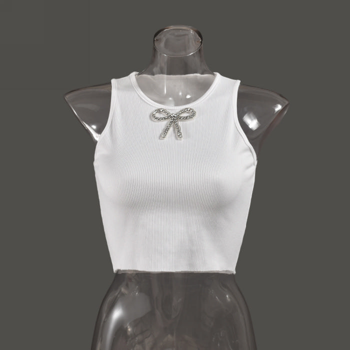 (Real Image)2024 Styles Women Cropped Fitted Beaded Tank TopSKU: #CF59934-1
