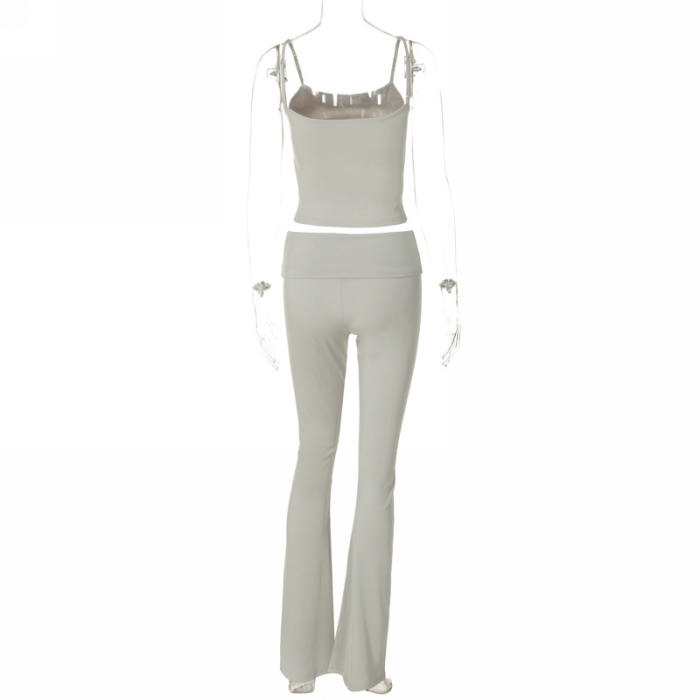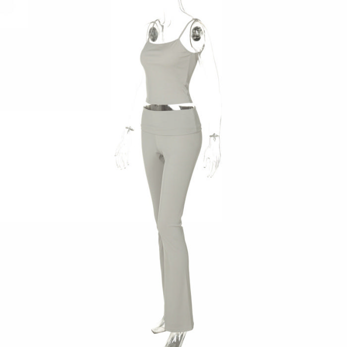 (Real Image)2024 Styles Women Cropped Halter Crop Top and Slim Pants SetSKU: #CF88227-1