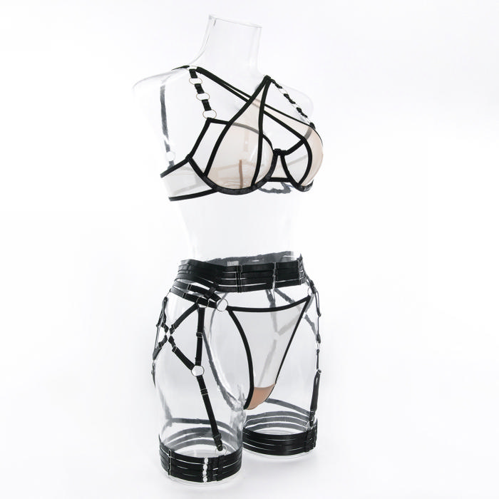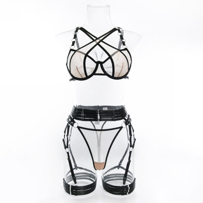 (Real Image)2024 Styles Women Cross-Over Patchwork with Steel-Boned Sexy Three-Piece SetSKU: #GF03021-4