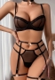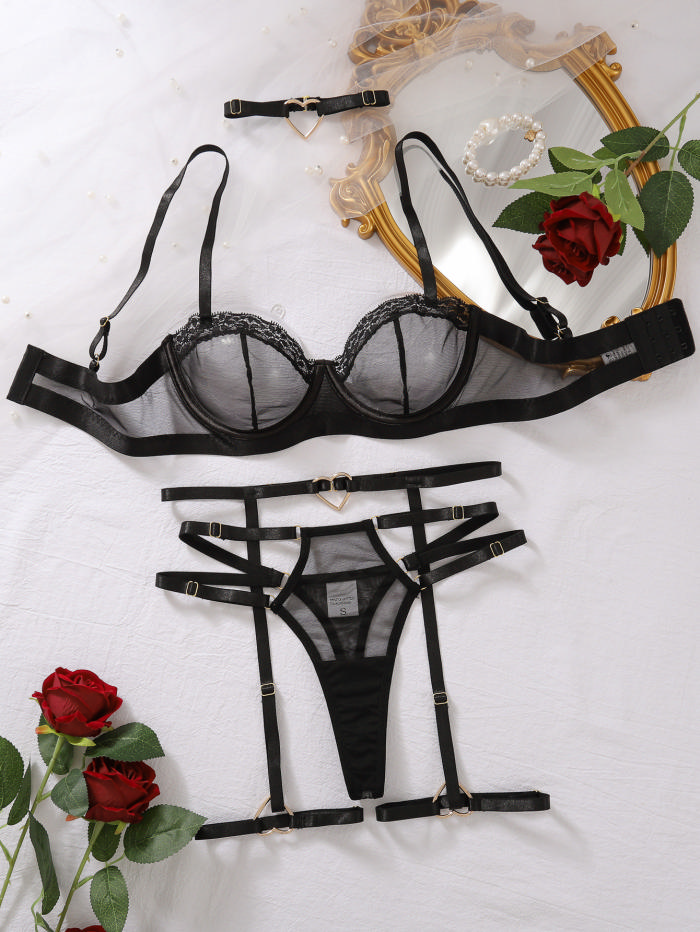 (Real Image)2024 Styles Women Delicate Sheer Net Mesh with Heart Metal Buckle Erotic Four-Piece SetSKU: #GF02008-1