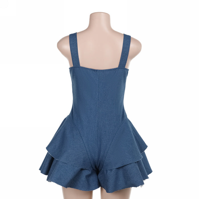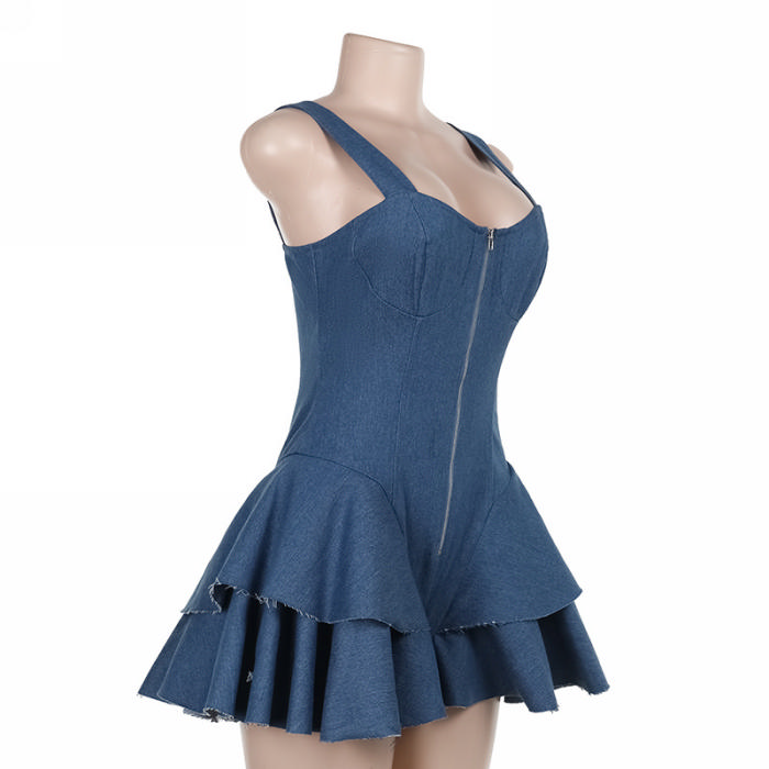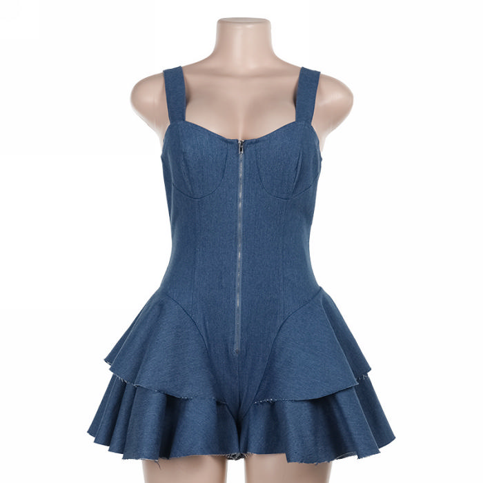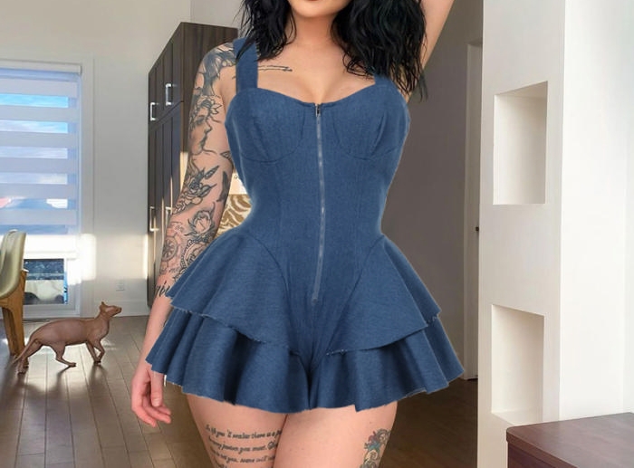 (Real Image)2024 Styles Women Denim Zip-Hem Jumpsuit with SkirtSKU: #XF92982-1