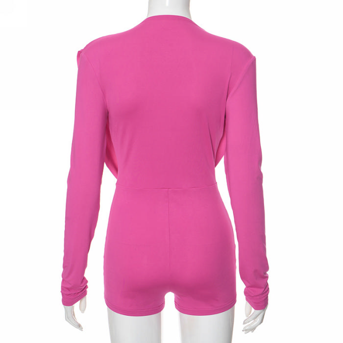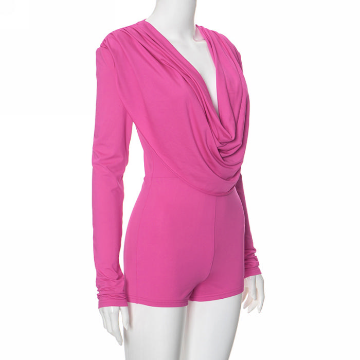 (Real Image)2024 Styles Women Drape-Neck Pleated Waist-Cinch Bodycon JumpsuitSKU: #CF42079-1