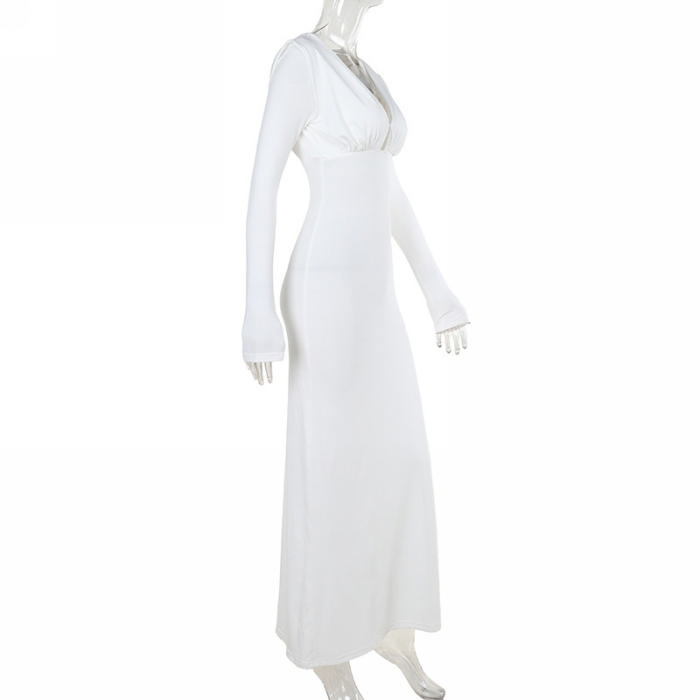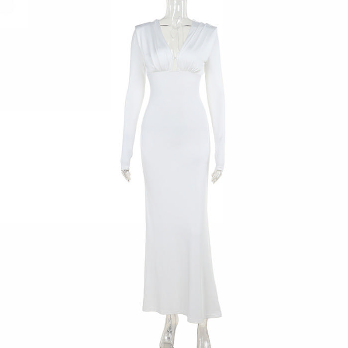 (Real Image)2024 Styles Women Elegant Fitted Deep V-Neck Long-Sleeve DressSKU: #XF92934-1