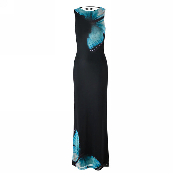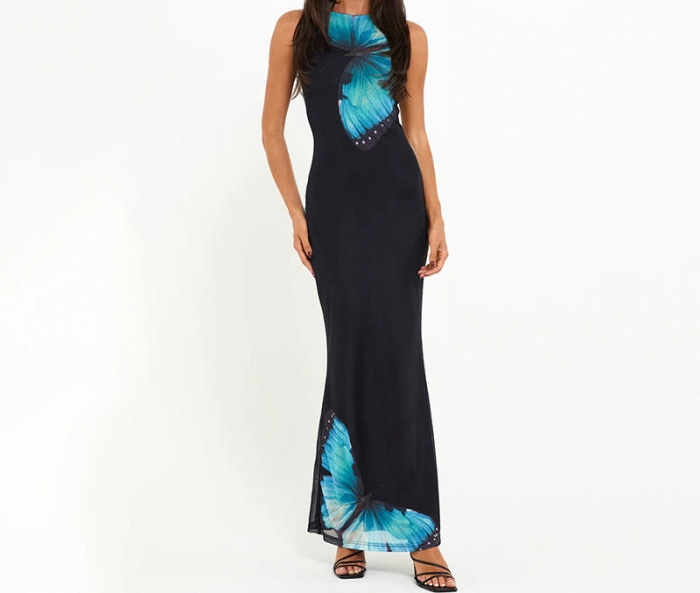(Real Image)2024 Styles Women Fashion-Color Halter Strap Skater Maxi DressSKU: #CF92071-1