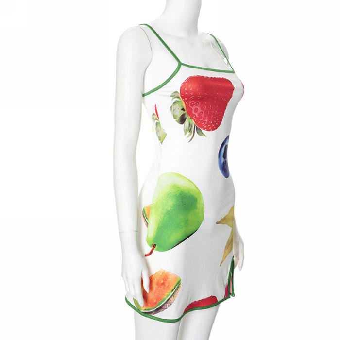 (Real Image)2024 Styles Women Fashion Fruit Print Split Halter Open Back Mini DressSKU: #CF76152-1