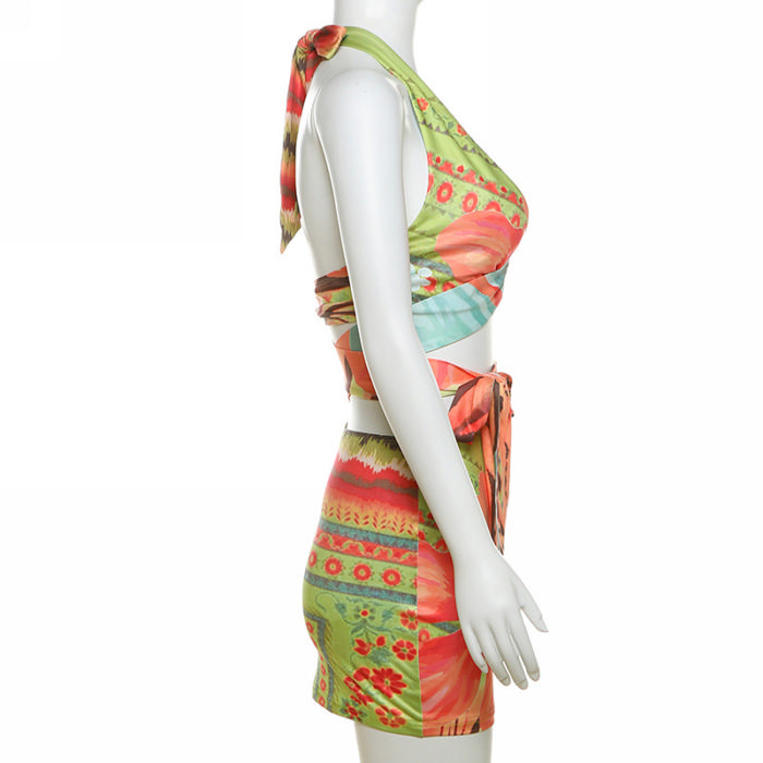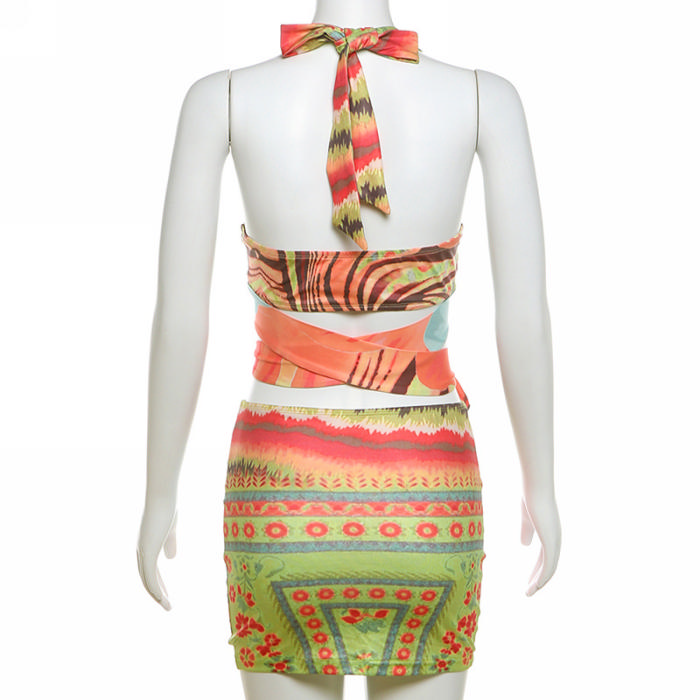 (Real Image)2024 Styles Women Fashion Halter Deep V Open Back Sexy Bodycon Pencil Skirt SetSKU: #CF83313-1