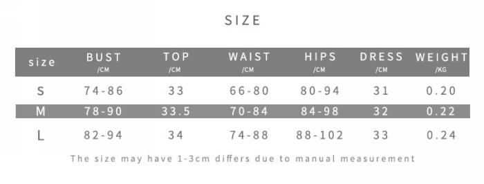 | Size | Bust | Waist | Hips |
