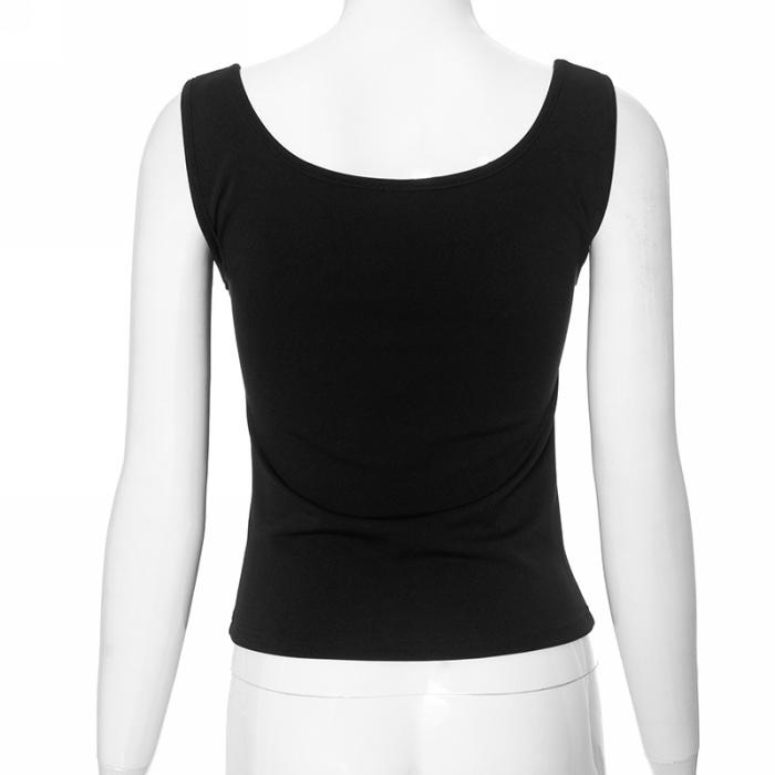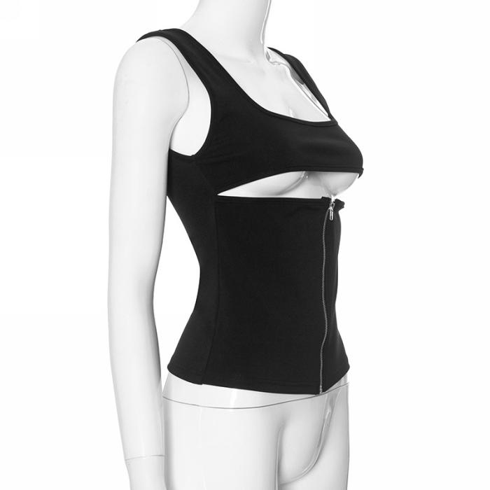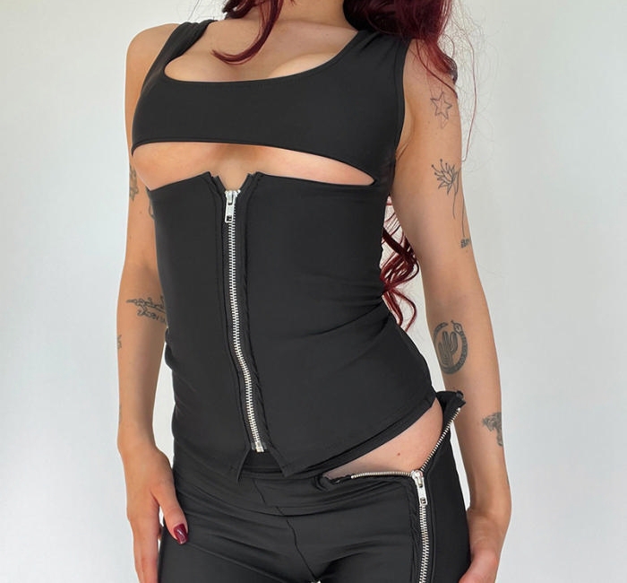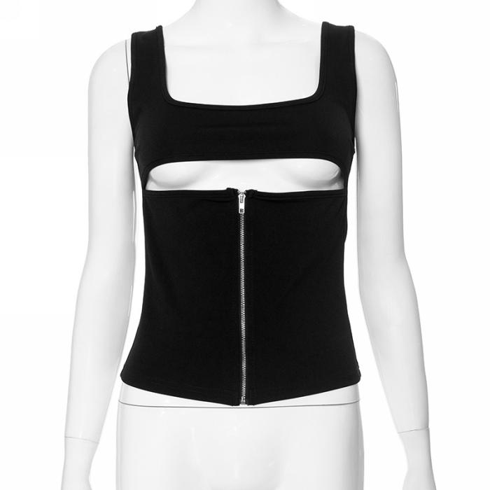 (Real Image)2024 Styles Women Fashion Open-Work Design Zippered Square Neck Sleeveless TopSKU: #CF76165-1