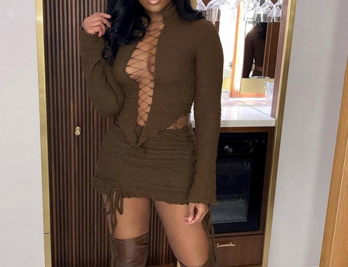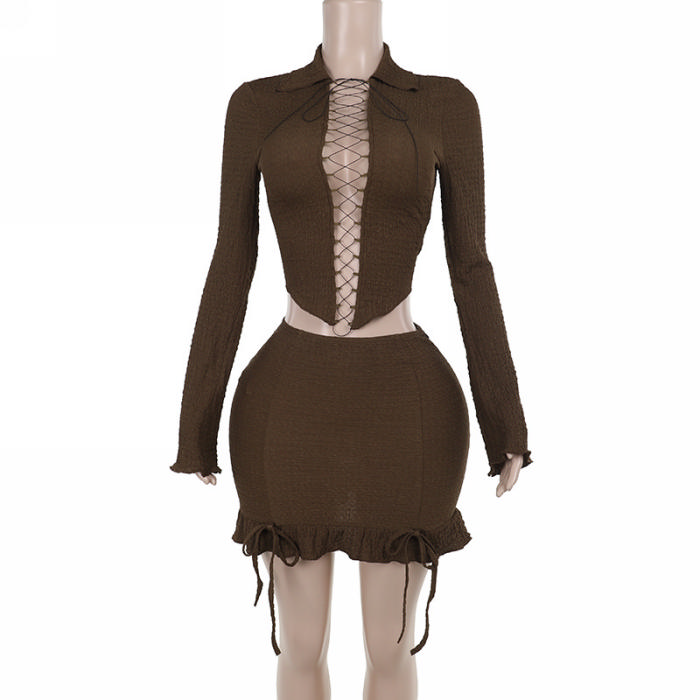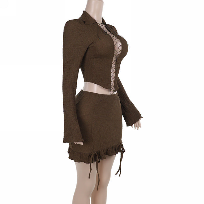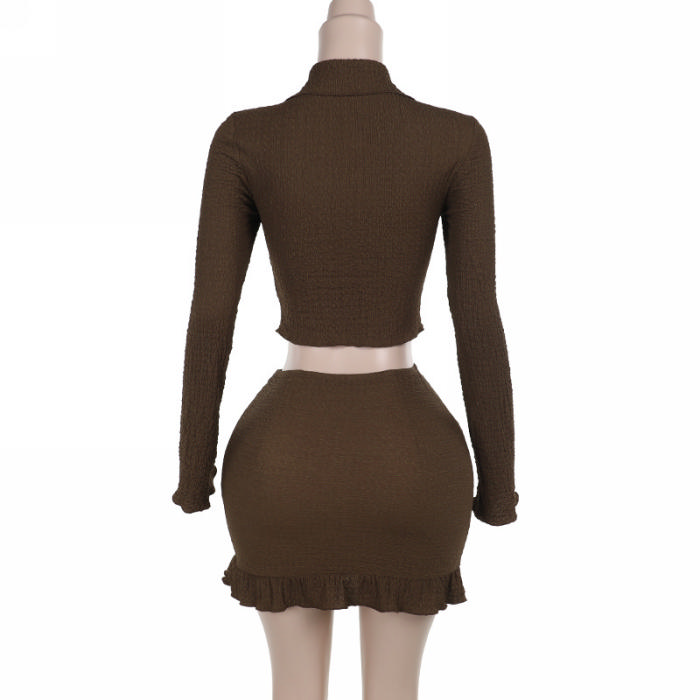 (Real Image)2024 Styles Women Fashionable Long Sleeve Skirt Set - Trendy Two-Piece OutfitSKU: #GF04012-1