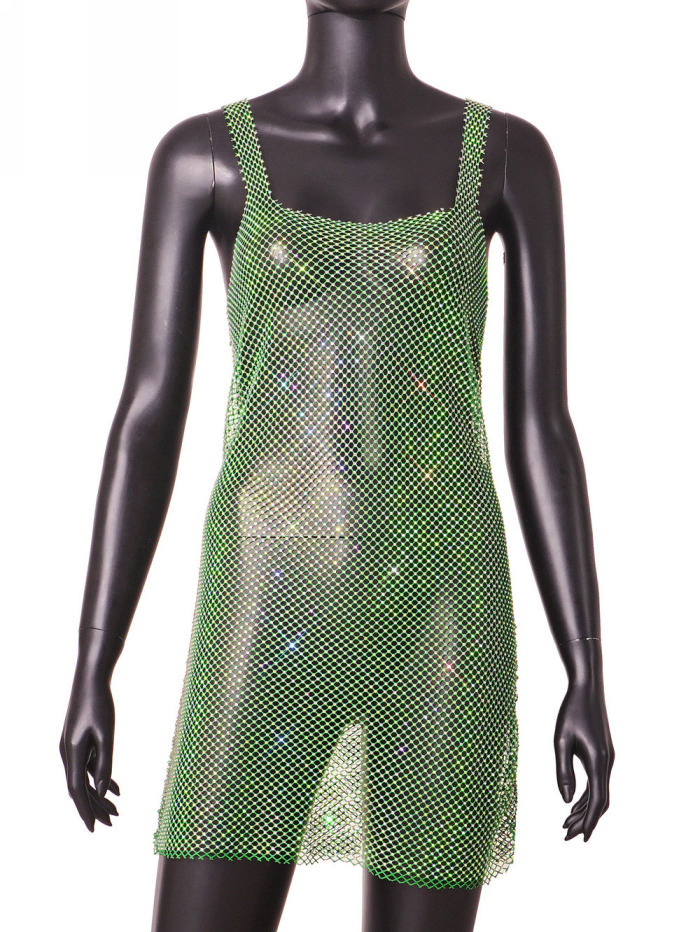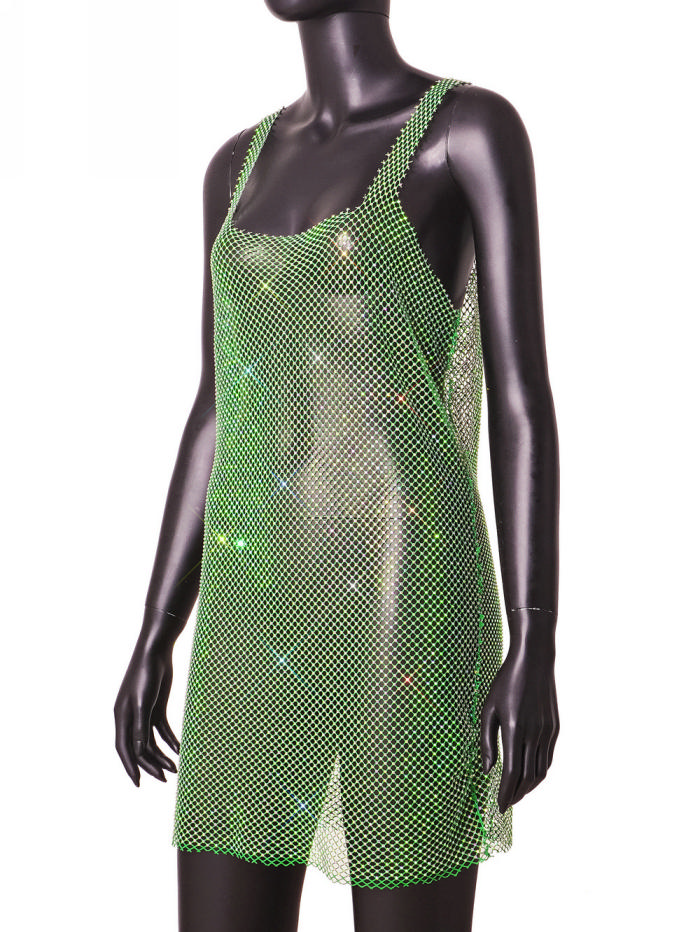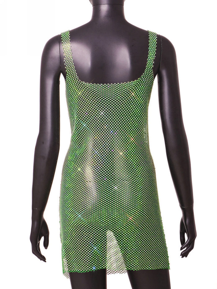 (Real Image)2024 Styles Women Fashionable Sexy Hot Drilling Stretch Rhinestone Fishnet DressSKU: #CF90135-1