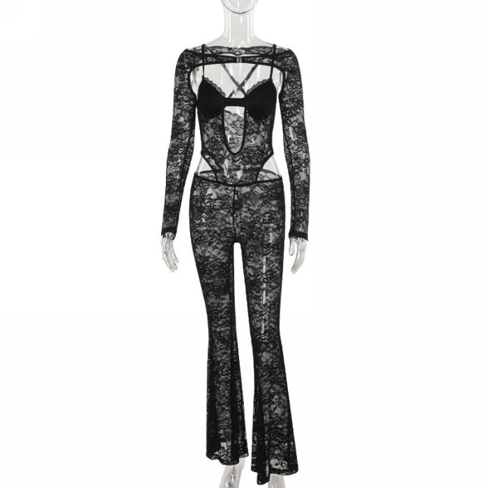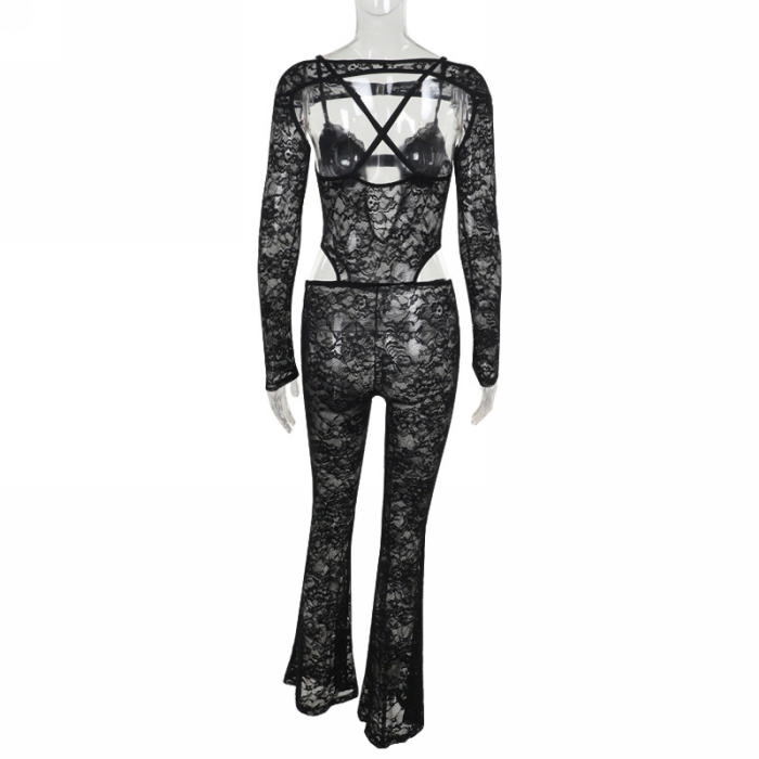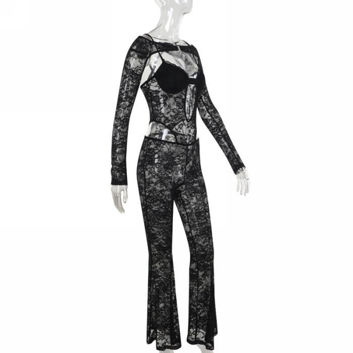 (Real Image)2024 Styles Women Fitted Lace Long Sleeve JumpsuitSKU: #GF04002-1
