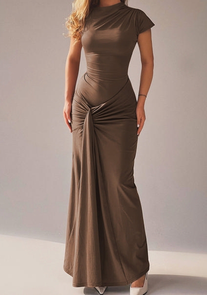 (Real Image)2024 Styles Women Fitted Pleated Tied Waist Short Sleeve DressSKU: #CF88294-1